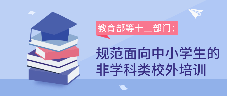 一年多来,在全国各地及社会各方共同努力下,学科类培训治理取得阶段性发展。在此基础上,为回应社会关切,加快解决非学科类培训出现的问题,全面规范非学科类培训行为,维护广大学生及家长合法权益,近日,教育部等十三部门印发《关于规范面向中小学生的非学科类校外培训的意见》,对非学科类校外培训治理作出系统部署。[详情点击]