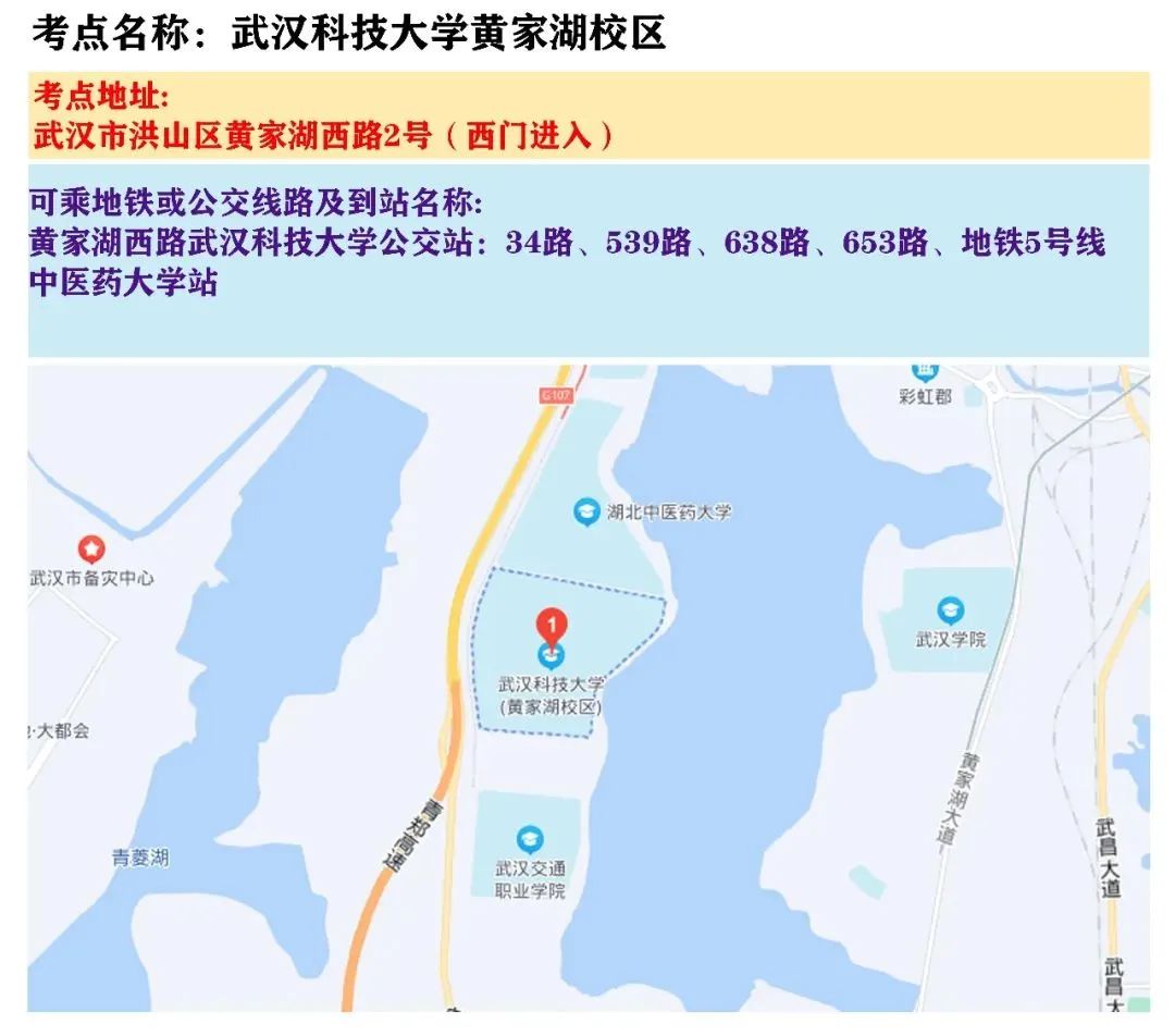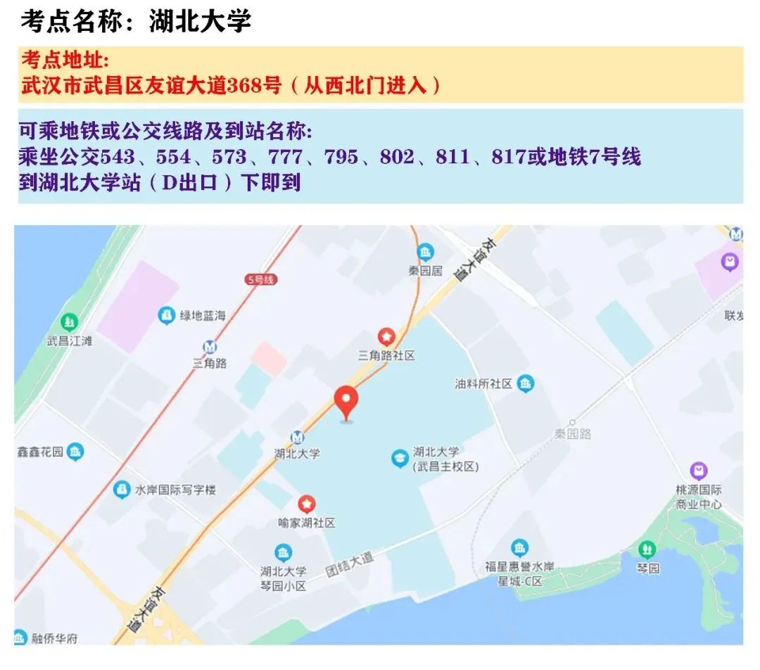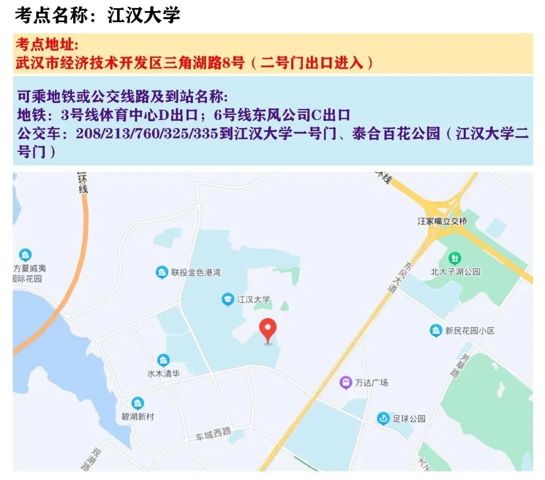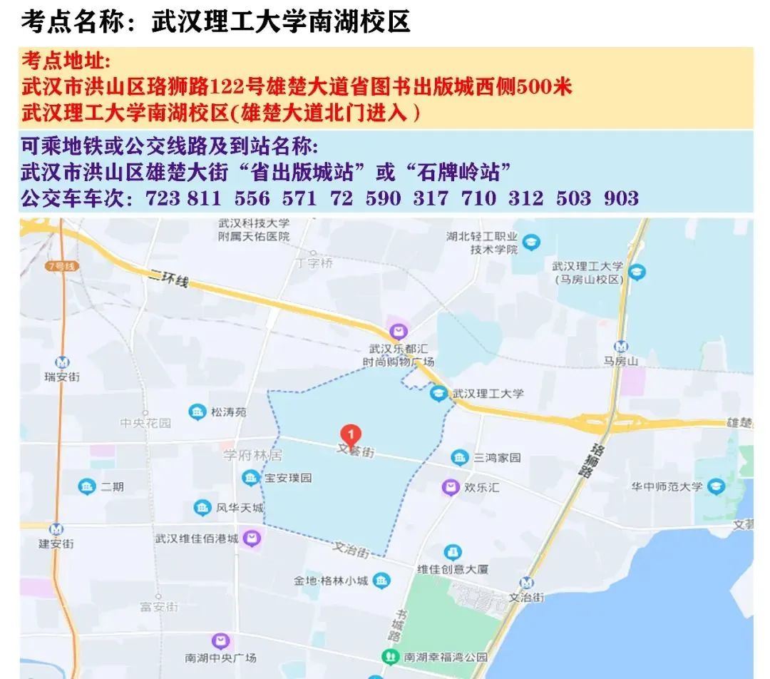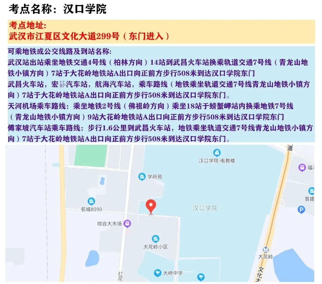 国考武汉考区考点地图